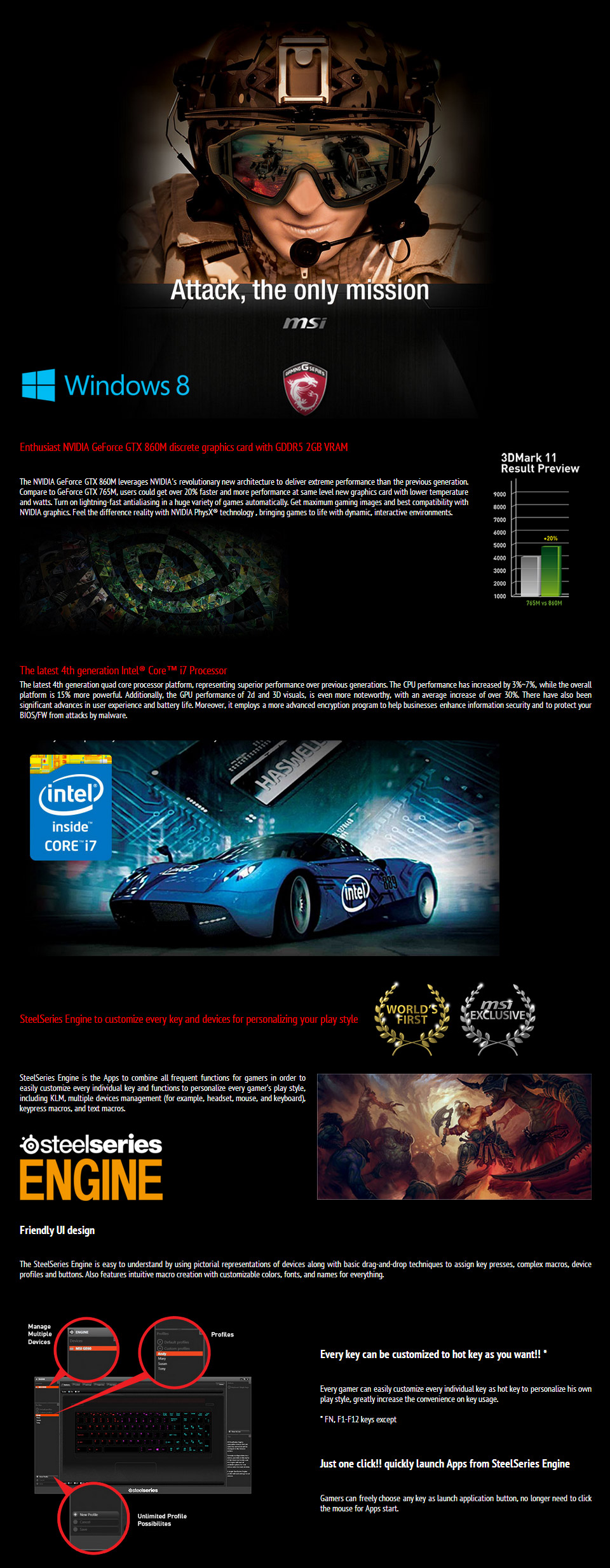 | CPU | Â The 4th Generation Intel@ Core i7 4700HQ Processors |